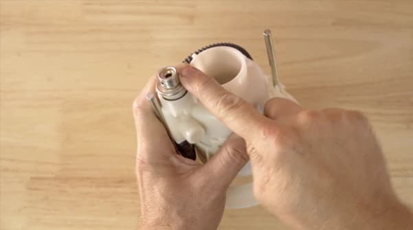 Next, remove the fuel line from the swirl pot and unclip the three clips holding the fuel filter pump bracket to the swirl pot. With the part now separated, clean the bowl of the swirl pot and set it aside as it will be reused later on.