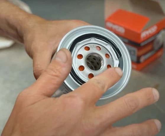 Once your oil filter’s off the engine, give its mounting surface a good clean and make sure that the old filter’s o-ring hasn’t remained on the engine. Making the mistake of accidentally running two o-rings can lead to massive oil leaks.